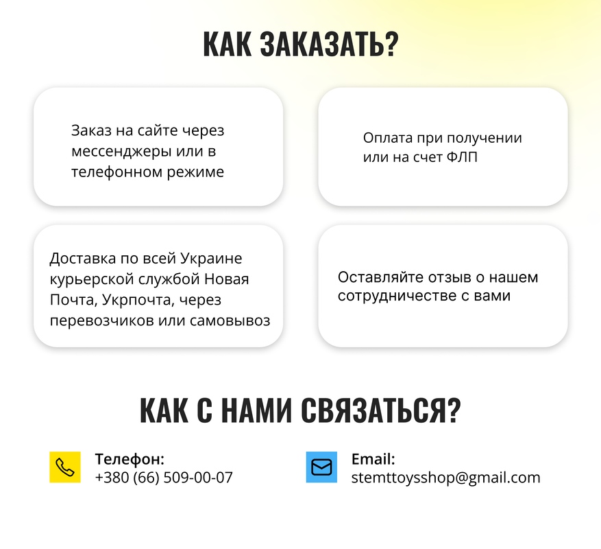 Добро пожаловать в мир STEM игрушек, где обучение превращается в веселое приключение! STEM Toys - это команда энтузиастов, увлеченных миссией вдохновить детей на развитие, научные и технические исследования с помощью увлекательных игрушек. Наш магазин создан с любовью к маленьким гениям и желанием сделать обучение увлекательным и доступным для всех.