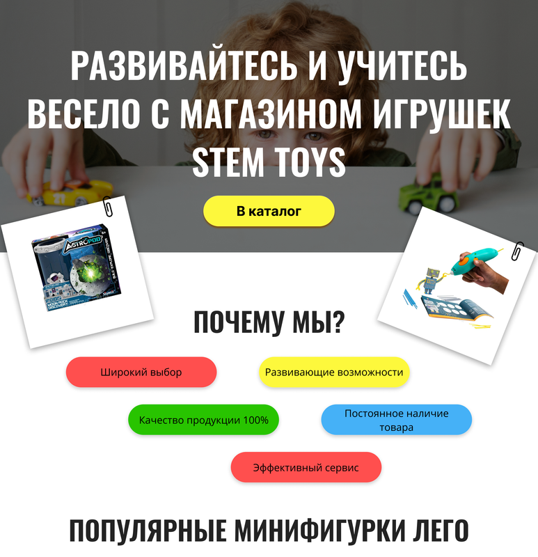 Добро пожаловать в мир STEM игрушек, где обучение превращается в веселое приключение! STEM Toys - это команда энтузиастов, увлеченных миссией вдохновить детей на развитие, научные и технические исследования с помощью увлекательных игрушек. Наш магазин создан с любовью к маленьким гениям и желанием сделать обучение увлекательным и доступным для всех.